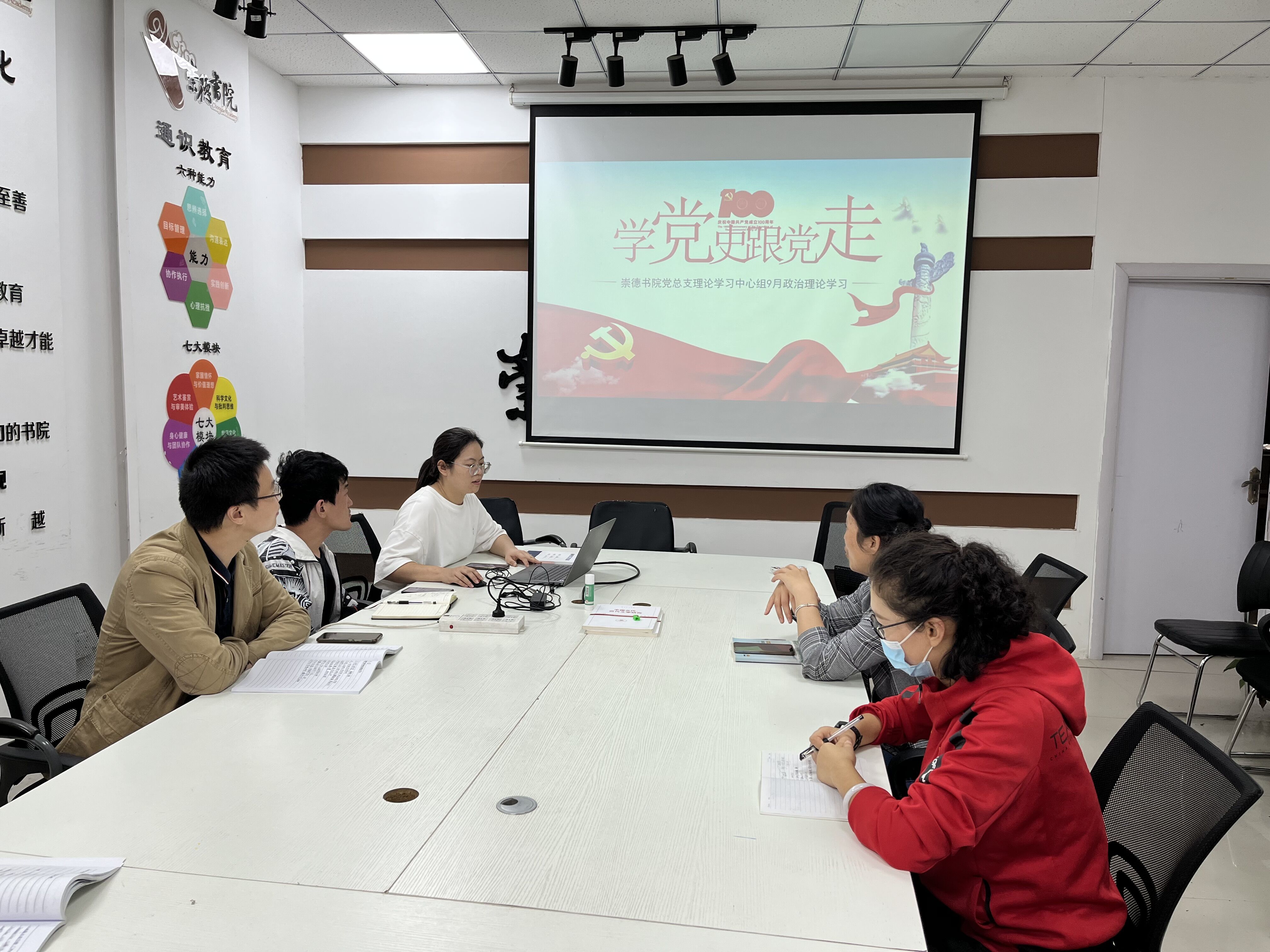 9月30日下午,崇德书院党总支理论学习中心组在书院会议室开展9月份政治理论学习。本次学习由崇德书院党总支副书记杨翠苹主持,重点学习了习近平总书记在中央统战工作会议上的重要讲话、习近平在省部级主要领导干部“学习习近平总书记重要讲话精神,迎接党的二十大”专题研讨班上的重要讲话等重要内容,书院理论学习中心组全体成员参加了学习。