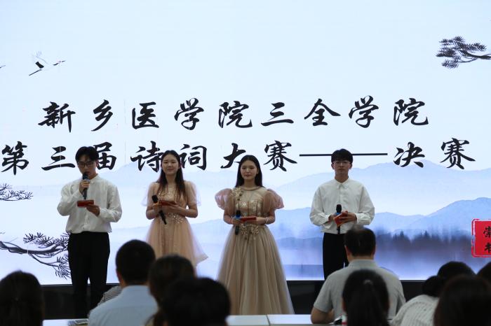 文化兴,则国运兴;文化强,则民族强。为进一步拓宽大学生思政教育创新发展格局,坚定历史自信、文化自信,推动我校学生传承弘扬中华优秀传统文化、践行社会主义核心价值观,打造“书香校园”。5月17日下午,崇德书院在智行书院多功能报告厅举办新乡医学院三全学院第三届诗词大赛总决赛。大赛邀请仁智书院院务主任窦倩、图书馆常亚辉、通识教育学院李庆中担任评委,各书院党总支负责人出席活动。
