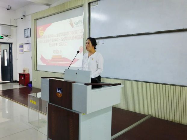 5月17日,共青团新乡医学院三全学院崇德书院第二次代表大会暨崇德书院第七次学生代表大会在谨学楼B101教室隆重召开。新乡医学院三全学院崇德书院党总支副书记杨翠苹、院务主任兼团总支书记张晟烨以及书院相关老师和学生代表参加。