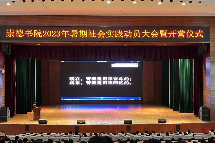 为深入学习贯彻习近平新时代中国特色社会主义思想和党的二十大精神,引导和帮助广大青年学子上好与现实相结合的“大思政课”。6月18日下午,崇德书院在闻德礼堂召开了2023年暑期社会实践动员大会暨开营仪式,本次动员大会由团总书记张晟烨主持,600余名学生参加。