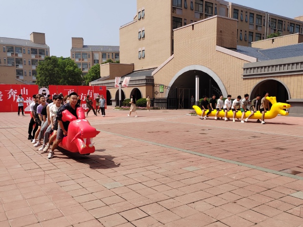 “左右~左右~左右~”“加油~加油~加油~”,阵阵鼓声伴随着一句句节拍声、一声声呐喊声,响彻小广场的上空。我书院与“兄弟”书院仁智共同举办了一场独特的龙舟娱乐赛。“旱地龙舟”是在地面上模拟龙舟赛,承袭了水上龙舟的特点,具备了水上龙舟赛基本元素,龙头与龙尾栩栩如生。学生们跨坐在龙舟上,大家动作整齐划一,鼓足干劲,喊着整齐有序的口号声奋力前行,龙舟快速向前,掌握龙头的队员努力控制着前进方向。“‘旱地龙舟’以更为轻松愉快的方式,把团队协作的重要性放大了,与水上龙舟很不一样,很有意思,大家齐心协力向前冲的感觉太好了!”毕业生苏业元激动地说道。