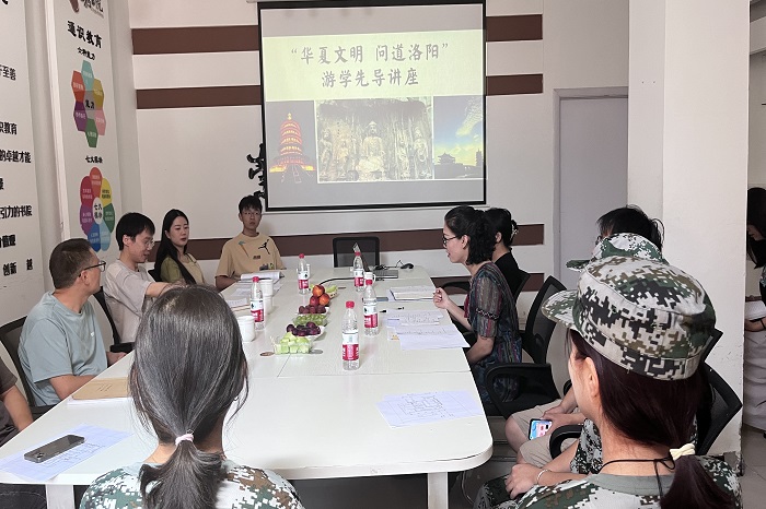 随后,孙达时为“华夏文明,问道洛阳”游学团队做先导讲座,通过旁征博引、深入浅出、讲故事、树形象等方式,分别从朝代更迭、城市文化、文学思潮三个方面解读洛阳。并重点指出参观博物馆过程中,要注重思想和民风两个方面,从文物读懂其背后的文化。除此之外,孙达师还针对我校诗词大赛选手进行交流和指导,并建立学习辅导群,为今后的比赛提供意见。他强调,中华文化博大精深,只有深入了解中华文明历史、在实践中感悟中华优秀传统文化的伟大、才能真正坚定文化自信,为建设中华民族现代文明贡献力量。