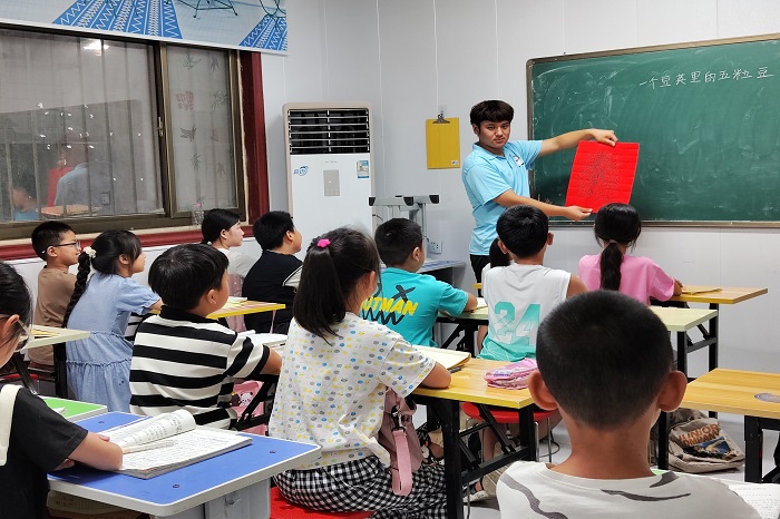 接下来的几天,团队成员返回家乡,化身非遗文化传播者,将木板年画传统文化对当地小学生以及居民进行宣讲。通过展示一幅幅年画,讲述年画背后蕴含的文化价值,使人们更好的了解朱仙镇木板年画的发展历史和现代成就。“随着科学的进步,年画不再是封建的象征,而转变成了一种风俗、求幸福、图吉利的礼仪形式。通过给小朋友们普及木板年画,使他们更加了解我国非物质文化遗产的历史价值,从小树立文化自信,自觉地学习和传承中华优秀传统文化。”徐淼说道。
