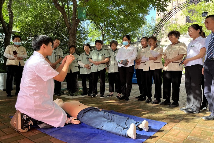 7月11日下午,实践团队成员在社区进行急救知识的宣讲,现场为大家展示了胸外按压、人工呼吸等心肺复苏技术手法,告知大家遇到突发事件如何第一时间作出反应,如何抓住急救的“黄金4分钟”。不仅如此,成员们还详细普及了海姆立克急救法,对急救步骤进行了讲解演示。最后,居民现场进行应急救护演练,成员们在旁边指导。宣讲结束后,参训的社区居民对成员们说:“感谢社区和学校提供了这个机会,让我们了解了基本的救护知识和技能,在关键时刻能够自救同时也能为他人提供帮助,希望学校日后能多举办一些这样的活动,我们也能够跟随志愿者们学到更多的医疗知识。”