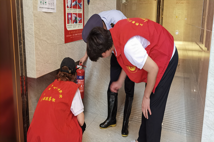 为全面加强社区防区防灾减灾工作,提高公众安全防范意识,7月9日实践团队前往建业比华利庄园进行防汛防火检查。团队主要开展了对小区楼道、各电梯口、安全出口以及防洪防汛防火物资的全面检查活动,针对各种突发事件制订出各种应对方案,发现问题立即采取措施,做到防患于未然。