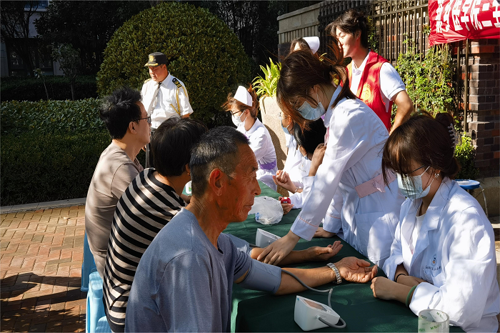 7月10日,为了帮助居民及时掌握自己的健康情况,做到疾病早发现、早预防、早治疗,实践团队挑选专业人员组成义诊队伍,前往凤翔社区为居民测血压、血糖。实践团队成员提前学习测量血压血糖的方法,并且查询相关资料,做足了前期的准备工作。活动现场,义诊队伍现场悬挂宣传横幅,在义诊摊位上接待前来咨询的居民。“大爷,您不要急,慢慢说,我先帮您测一下血压。”队员们通过“拉家常式”的问诊方式,热情细致地询问老人的既往病史和日常习惯,有条不紊地为他们量血压、测血糖,并指导居民如何正确使用家用血压测量仪。成员们一边测量一边也不忘嘱咐居民定期检查身体的重要性,鼓励居民养成健康的生活习惯。