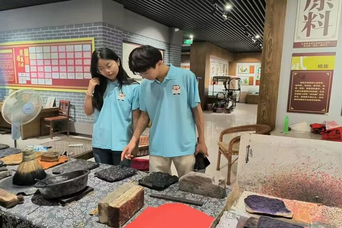 传承木版年画,崇德学子在行动。通过本次社会实践,我们知晓了中华优秀木版年画文化正是在一代代人手中不断得以传承,才能够在历史长河里熠熠生辉。作为新时代的青年,我们要勇于承担传承非遗文化的历史重任,将继承中华非遗文化的深厚底蕴和开拓木版年画的光明未来相结合,让木版年画这种非遗文化在吾辈青年手中薪火相传!