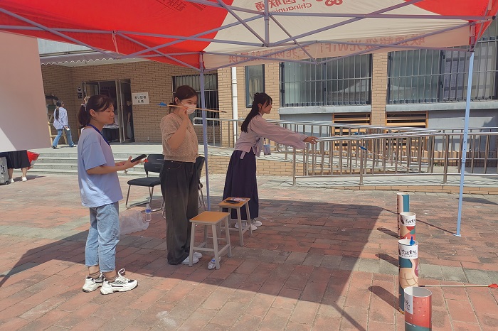 趣味投壶,种下理想。活动现场共设立4个愿望箭壶,箭壶上标有不同的标签,如:报国、奉献等,不同的成绩设立有不同的奖项。学生和家长积极参与,大展身手。看,来自2023级护理学的宋念祖屏息凝神,紧紧抓住手中的箭,轻轻一投便投中了“报国”箭壶。“没想到,开学第一天我的标签竟然是报国,我想我一定不会辜负这项活动,在未来的学习生活中,努力学习专业知识,为未来成为一名合格的医务工作者而努力,真正做一名可以报国的人。”宋念祖说。