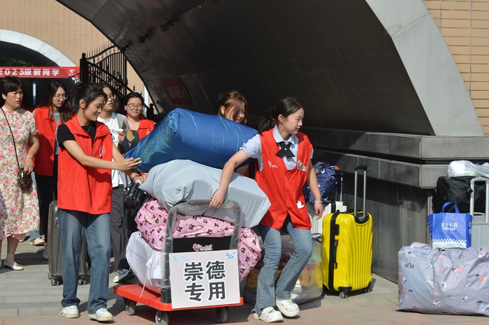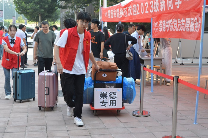天刚蒙蒙亮,党员们便佩戴党员徽章和工作证,身着志愿服,出现在各个迎新岗位上。“同学,欢迎你来到崇德书院!请先扫码进行签到。”“报到手续在一站式服务大厅,这边走。”“请各位家长到我们休息处休息吧!我们报到很简单,您稍等一会儿”……大家用温暖的笑容和关切的话语,减少了新生来到新环境的陌生和不安。迎新过程中,党员志愿者为新生提供了热情周到的服务,展示了广大师生党员勇于担当、乐于奉献的良好风貌,进一步增强了师生党员们的党性修养,也使新生潜移默化地感受党员的先进性和模范带头作用,是对新生的一次体验式的入党教育。