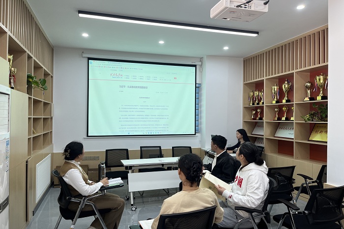 中心组成员将所学所悟与自身体会相结合进行交流学习。张晟烨同志说道:“习近平总书记对教育强国建设作出的系统论述,是党的创新理论的重要组成部分,为加快建设教育强国、为中华民族伟大复兴提供有力支撑指明了方向。习近平总书记在致信全国优秀教师中代表大力弘扬教育家精神,是我们教育事业蓬勃发展的必然要求,我们要牢记为党育人、为国育才的初心使命。”王红英同志说:“我们要全面贯彻党的教育方针,坚定理想信念,努力用严爱相济,润已泽人的人格魅力呵护学生心灵,以学术造诣开启学生智慧,培养有社会责任、有创新精神、有专业知识、有健康身心的应用型人才。引导学生扣好人生第一粒扣子,将自己变成一束光,照亮学生前行的道路。”