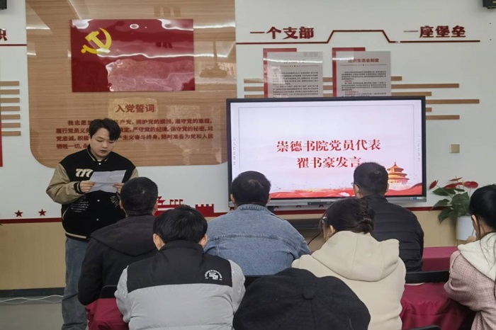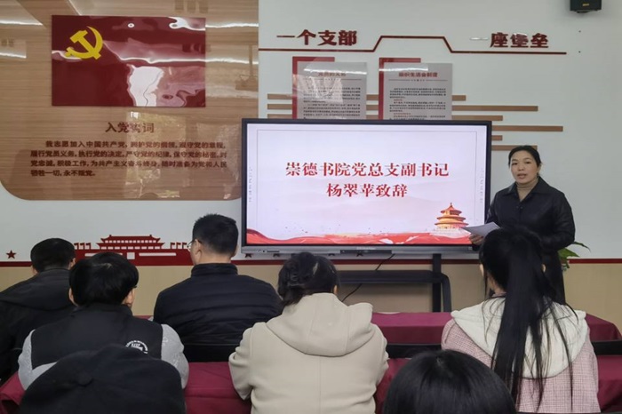 为充分发挥学生党员在宿舍文明建设中的先锋模范作用,创建良好的宿舍环境和宿舍文化氛围,以实际行动带动其他同学共同进步。11月10日上午,崇德书院在党建活动室举行学生党员宿舍挂牌暨第四届宿舍文化节启动仪式。崇德书院党总支副书记杨翠苹、崇德书院各学生党支部书记以及宿舍挂牌学生党员共同参加。