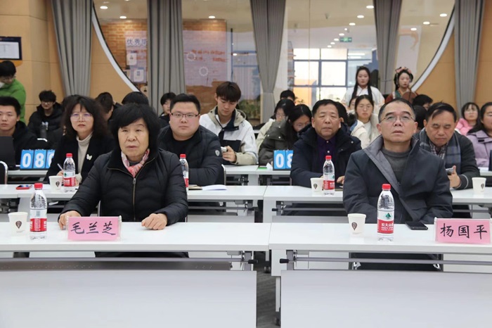 为了全面贯彻党的二十大精神,不断创新第二课堂,让中华优秀传统文化焕发出新的活力,积极营造“以赛促学、比学赶超”的学习氛围,激发同学们学习的积极性和主动性。12月28日,我校在智行书院报告厅举办首届“培根铸魂·医战到底”医学词汇大赛。此次大赛由基础医学院党总支和崇德书院党总支主办,解剖病理生理党支部和崇德书院社团联合分会承办。大赛邀请教育总督导毛兰芝、党委副书记杨国平、纪委书记石永立、副院长王之玺,各书院负责人以及基础医学院相关负责人出席活动。