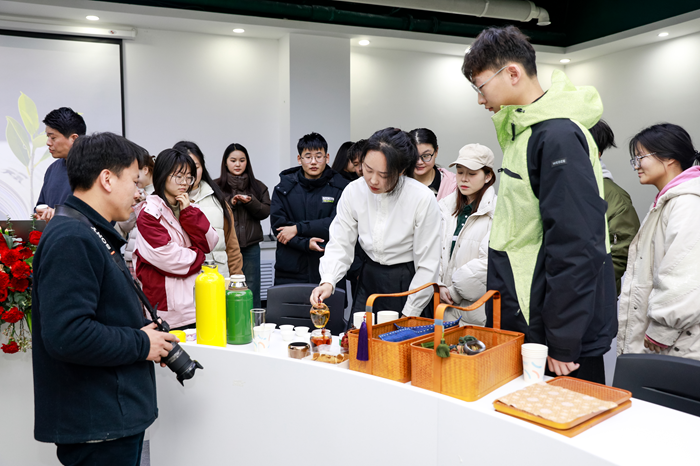 在互动环节,顾欢与田老师和同学们亲切交流,他说:“三全学院一直以来注重以文化人以文育人。茶文化是我国优秀传统文化的重要组成部分,将茶文化融入高校人文素质教育,有利于提高大学生文化自信,有利于拓展大学生知识涵养,领悟更多人生哲理,有利于进一步弘扬和传承中华优秀传统文化。”