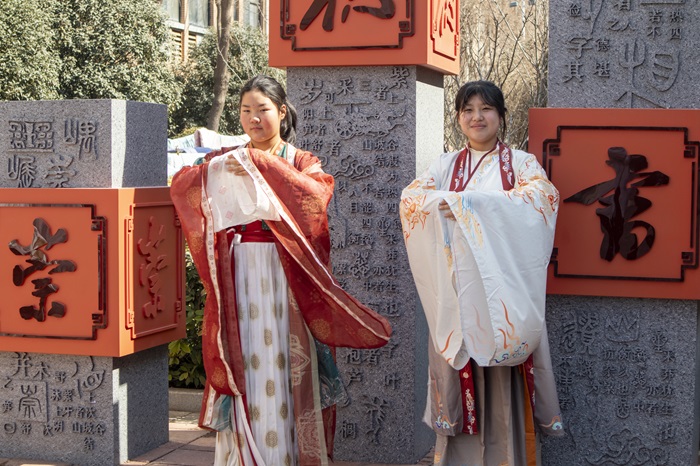 汉服体验处,成为了同学们争相前往的热门“景点”。手持新年祝福语,同学们在喜气洋洋的氛围中露出了灿烂的笑脸。“姐姐今天送我来学校,看到我们书院的汉服想要体验一下,我们穿着汉服,在校园的各个景点拍照打卡,这些美好的瞬间,被镜头记录,成为新学期里难忘的回忆。”武睿涵说。