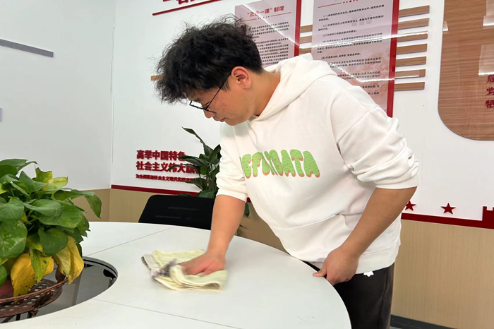 最后,党员们积极参与志愿服务活动,将理论与实践相结合。他们带着水盆,抹布,在功能区开展志愿卫生保洁,为同学们提供干净卫生的环境,用实际行动践行雷锋精神,展现了新时代大学生的良好风貌。