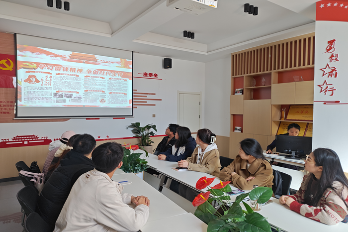 会上王沥滢同志围绕“雷锋精神内涵”“雷锋精神经典语录”“雷锋精神的青春使命”等三个方面和大家做交流。
