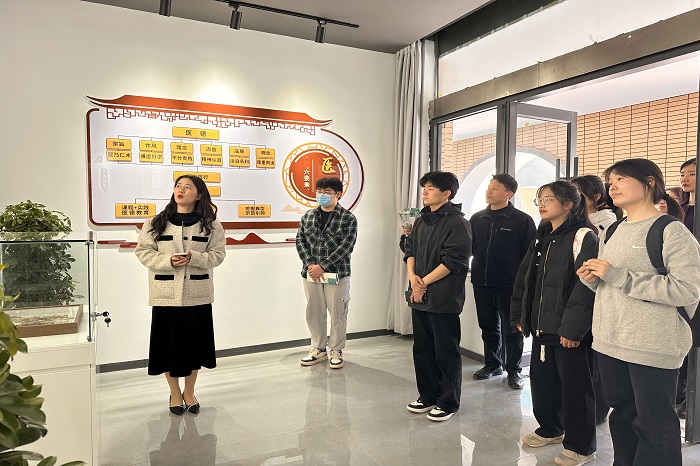 理论课程结束后,崇德书院学生第四党支部组织委员魏欣珂带领大家参观崇德书院医德文化展厅。从认识甲骨文“医”的释义,到神农尝百草,再到当代医学生的先进事迹,与会师生党员在从古到今的医学人物身上再次真切感受到了古今医务工作者对于患者的责任与担当。22级护理学学生党员张珂欣说道:“作为医学生,要负起扎实医学基础知识、熟练专业技能、掌握思维的责任,积极响应新时代的新政策新国情,尽自己所学所能,完成公共卫生事业赋予我们的责任与义务:除人类之病痛,助健康之完美。另外自己在学习过程中,坚持心系以人民为中心,以健康为根本的坚定方向,为祖国的医疗事业之薪火增添新的柴禾。”在时代传承区,与会师生重温习近平总书记对高等医学教育的要求:不板结于医学理论知识教育,把深厚的人文素养与医德教育常态化融入教学,培养德智全方位发展的新型人才。