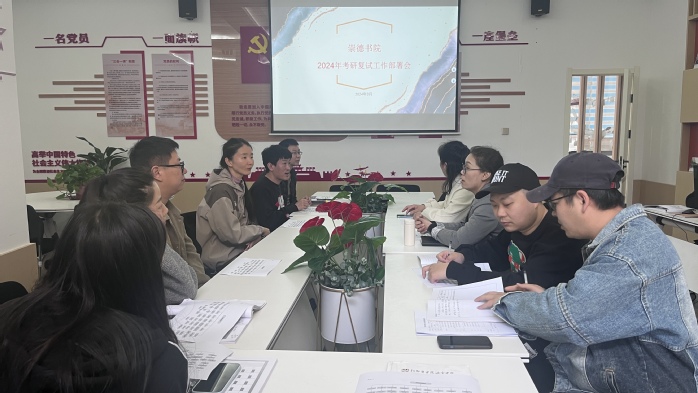 针对2024届考研学生,崇德书院全面摸排并动态掌握学生考研院校报名及专业选择、考研分数情况,进行考研分析研判与指导部署工作。自3月份以来,崇德书院党总支副书记杨翠苹带领全体辅导员组织3次专题会议,共同研究部署2024届考研学生复试指导工作。杨翠苹强调,各位辅导员要主动联系考研学子,了解其思想动态及心理包袱,进行一对一沟通,及时为学生排忧解难,开展心理疏导主题班会,引导学生以积极的心态面对考研结果。