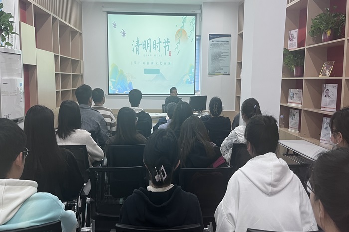 学习插花折柳之习俗、观看影视作品、进行诗词创作等,崇德书院各党支部创新形式,举办形式多样的清明节活动。崇德书院学生第二党支部和第三党支部主要介绍了清明节的节日习俗、历史渊源、文化内涵等相关知识,为大家带来一场关于中国传统节日的思政课。学生第四党支部成员结合清明节主题进行诗词创作,或是诵读分享自己喜欢的清明节诗词。刘芮同学说:“通过本次活动,使我们感受到了中国传统节日之美、中国传统诗词文化之美。作为新时代的大学生,我们有责任与义务继承与发扬中华优秀传统文化,坚定文化自信,为建设文化强国贡献自己的力量。”