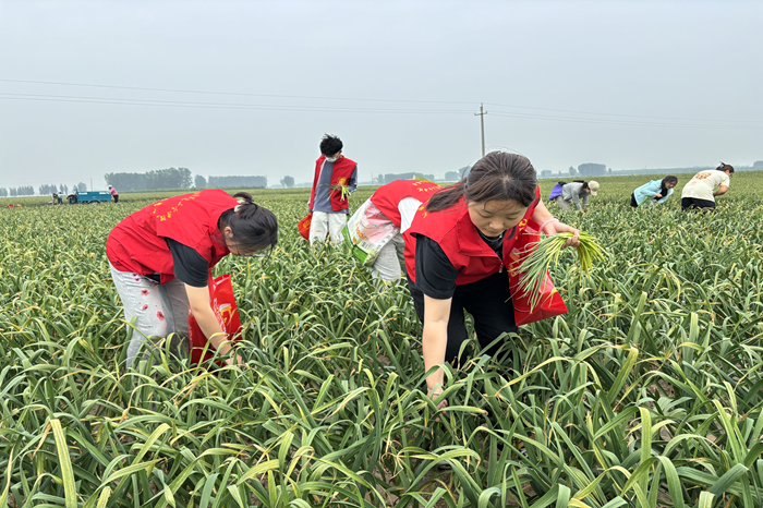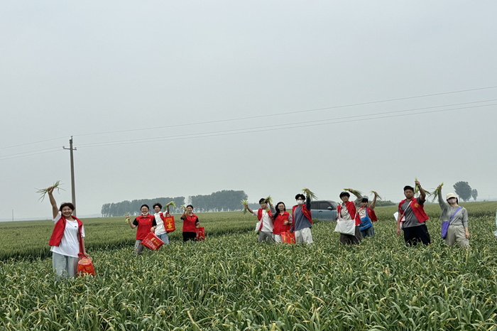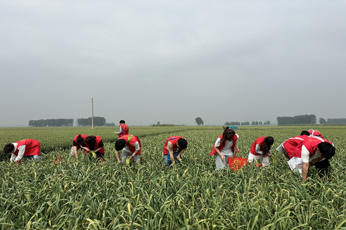 4月28日上午,崇德书院师生党员代表来到原阳县农犇农牧专业合作社,开展“田间微党课”主题党日活动。此时,正是蒜苔收割的时节,经过农民伯伯的讲解和示范后,同学们迅速掌握了抽蒜苔的要领,学会了如何完整的抽出蒜苔而不破坏蒜头根部,并在实践中越加熟练。学生党员武睿涵说道:“这次实践让我深刻体会到了农民伯伯的辛勤劳作和粮食的来之不易,让我意识到生活中的每一份安逸和舒适,都是建立在无数人辛勤付出的基础上的。作为新时代的学生党员,我们应当珍惜生活中每一份来之不易的幸福并为之努力。通过学习更多的专业知识,为社会做出贡献,为国家的繁荣富强贡献自己的力量!”