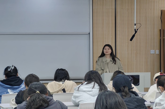 会议伊始,王悠从此次大赛的赛道组别、赛事设计与内容、参赛项目类型、赛程安排与奖励四方面为学生介绍此次比赛。然后,从明确参赛目的与定位、选择合适项目、组建优秀团队、完善项目策划书、提升路演能力、寻求资源与支持六个方面分析了如何备赛。王悠鼓励同学们踊跃报名,积极参赛,她说:“比赛不仅有助于提升专业技能和知识水平,还能增强团队协作和创新能力,同学们多多学习往届选手比赛经验,明确参赛要求,及早准备参赛材料”。会后,学生樊奇豪说道:“这场讲座对入校不到一年的我帮助很大,通过与其他同学的交流竞技,我能更清晰地认识到自己的优势和不足,有助于我进一步明确未来学习的方向和目标,还能提升解决问题的能力,对于未来的职业生涯是宝贵的财富”。