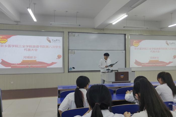 本次学代会分预备会、开幕式、正式会议和闭幕式四部分进行。21日上午预备会上,汇报了大会筹备情况,审议通过了《新乡医学院三全学院崇德书院第届学生代表大会议程(草案)、《新乡医学院三全学院崇德书院第届学生代表大会资格的审查报告(草案)》,听取了《新乡医学院三全学院崇德书院第届学生代表大会提案工作报告》,表决通过了学代会主席团建议名单、大会总监票人及监票人建议名单、大会总计票人及计票人名单等内容。