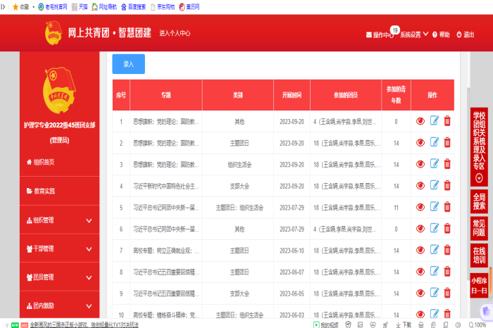 在青年大学习的收集上,支部创新使用小程序进行截图打卡统计,并设奖惩机制,激发团员工作积极性,提高工作效率,在完成速度及质量上排名第一且遥遥领先。活动开展方面,一年来我支部共开展多次线下会议,由团支书召开,优秀团员代表负责活动记录,并悉数录入智慧团建系统;两次以“学习20大永远跟党走,奋进新征程”为主题的组织生活会,活动改良以往形式,创新性采取二十大知识竞赛、团章诵读、找寻身边的红色建筑等项目内容提高团员积极性,平均团员参与率达到100%。我支部积极响应上级团委号召,做好年度团籍注册及团员教育评议