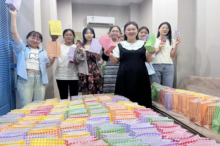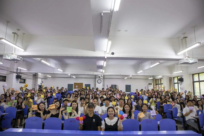 在大学生活的最后篇章,新乡医学院三全学院崇德书院2020级本科护理学49-56班全体同学齐聚谨学楼B102,一排排五颜六色的毕业礼包整齐摆放在每一个座位上,学生惊喜地发现,这份毕业礼物不普通,每一个礼包上竟然都挂着一枚刻有学生Q版学士服形象照和名字的钥匙扣,字牌上写着“山水万程,皆要好运”,“径行直遂,青云万里。”学生喻洁在看到礼物的瞬间眼泪就止不住在眼眶里打转:“我还没有给老师送花,却先收到了老师的礼物,真的是太感动了。”辅导员高淑雅为班里每个人都准备了这样一份特殊的“独家定制”,247是班里学生的数量,今天全员到齐一个不少。大班长刘佩文在班会后激动地说:“高老师为今天已经筹划准备了整整一个月,一直让我保密,我真是憋坏了。”