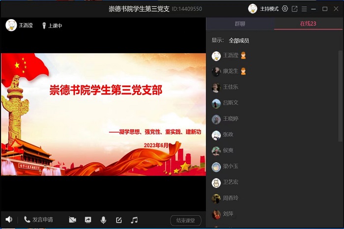 为了推动学习贯彻习近平新时代中国特色社会主义思想主题教育走深走实,6月14日下午,崇德书院学生第三党支部书记王沥滢同志为支部全体党员讲授主题为《学思想、强党性、重实践、建新功》的主题党课。