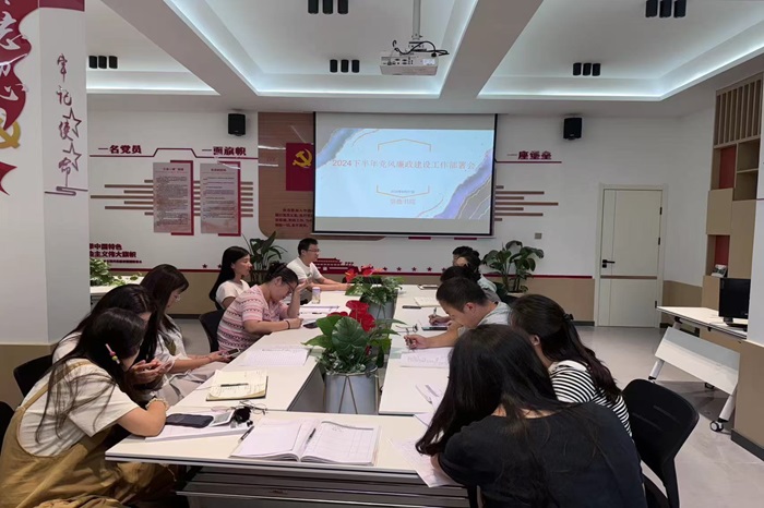 8月27日,崇德书院在书院会议室召开2024年下半年党风廉政建设工作部署会议,会议由党总支副书记杨翠苹主持,崇德书院党总支全体教职工党员参会。