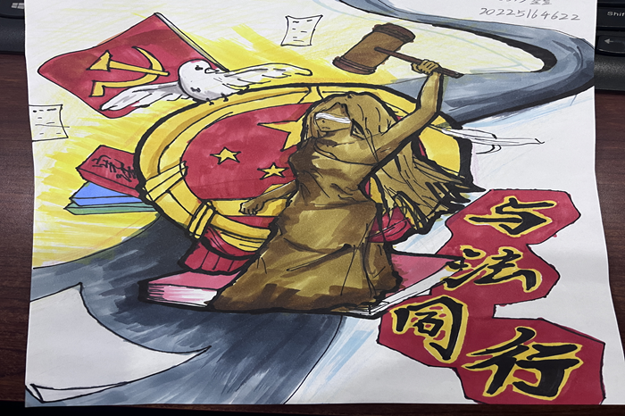 2月20日至3月7日,崇德书院各团支部开展“笔墨绘法,青春展风采”活动,共收集作品80余幅。学生们主要围绕“宪法精神”“网络安全法”“爱国主义教育法”等与大学生生活密切相关的法律主题,通过生动的案例和通俗的语言,将法律知识融入作品中,创作出内容丰富、形式多样的书法、绘画作品。“与法同行”“德润人心,法安天下”“法治在心中”一幅幅充满创意的作品不断涌现,充分展现了同学们对法治内涵的深刻理解与诠释。