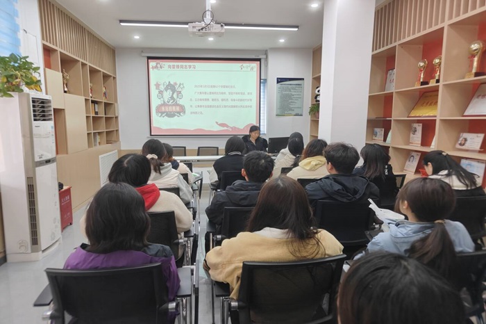 为深入学习贯彻党的二十大精神,践行社会主义核心价值观,传承和弘扬雷锋精神,让乐于助人、无私奉献的理念深入人心。崇德书院学生第三党支部于2025年3月19日中午在导师活动室举行了“深学两会精神守初心,弘扬雷锋精神担使命”主题党日活动。