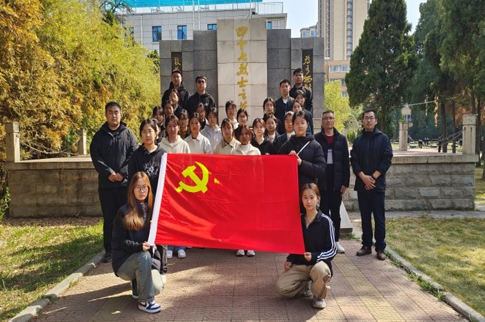 在烈士墓碑前,党员们怀着崇敬的心情,仔细瞻仰每一座墓碑。墓碑上那简单的名字和生平事迹,却承载着一段段可歌可泣的历史。学生第二党支部书记尚千红为大家讲述英烈事迹,他们中有在战争年代英勇牺牲的战士,有在和平时期为国家建设奉献生命的英雄,每一位英烈都用自己的生命诠释了对国家和人民的忠诚与担当。党员们在墓碑前驻足,默默缅怀,感受着英烈们的伟大精神,仿佛能听到他们在战场上奋勇杀敌的呐喊声,在平凡岗位上默默奉献的脚步声。这些墓碑不仅是英烈们生命的终点,更是他们精神的永恒象征,激励着人们不断前行。
