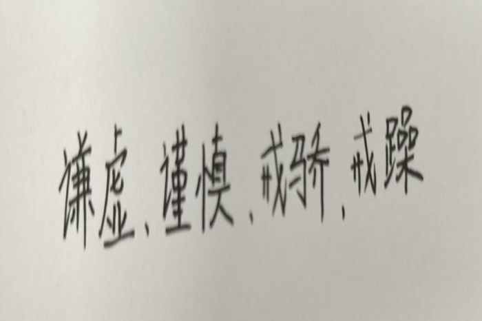 “谦虚、谨慎、戒骄、戒躁” 1945 年 4 月 23 日,抗日战争即将胜利结束之际,毛泽东在 “七大” 开幕词《两个中国之命运》的最后指出:“我们应该谦虚、谨慎、戒骄、戒躁,全心全意地为中国人民服务”,“只要我们能够这样做,只要我们有正确的政策,只要我们一致努力,我们的任务是必能完成的。”1949 年 3 月 5 日,新中国成立前夕,在党的七届二中全会报告中,他又告诫全党:“夺取全国胜利,这只是万里长征走完了第一步。”“中国的革命是伟大的,但革命以后的路程更长,工作更伟大,更艰苦。这一点现在就必须向党内讲明白,务必使同志们继续地保持谦虚、谨慎、不骄、不躁的作风,务必使同志们继续地保持艰苦奋斗的作风。”从此,“谦虚、谨慎、戒骄、戒躁” 成为中国共产党人自我修养的要求。