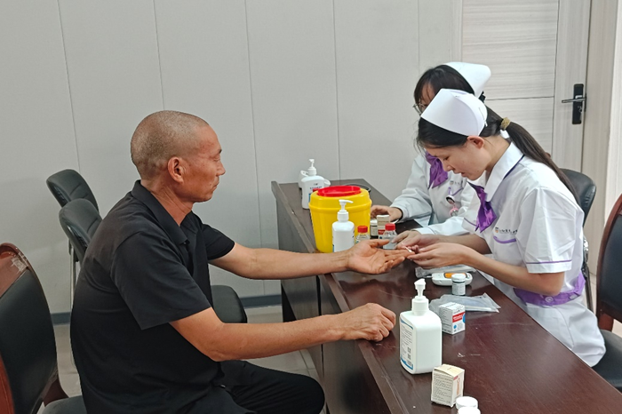 2025年6月20日,豫北医学院“医心护健康”血糖检测宣传实践团深入姚村开展了一场主题为“关爱老年健康,守护幸福晚年”的免费血糖血压检测及健康咨询实践活动。此次活动旨在为老年居民提供贴心的医疗服务,为居民构筑一道坚实的健康守护屏障。