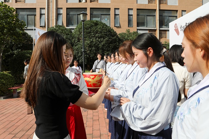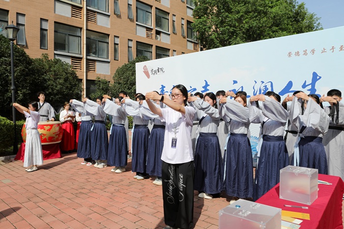 9月7日下午,崇德书院开展以“青衿之志,礼润人生”为主题的入学礼。新生们在老师与家长的见证下,通过开展正衣冠、拜师礼、点朱砂、亮梦想等环节,正式开启校园成长新旅程。