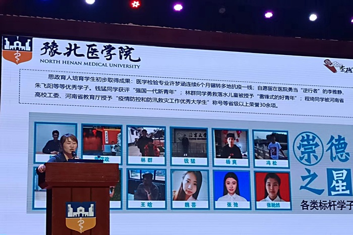 窦倩首先带领新生回顾了豫北医学院的办学历程与成就,阐述了学校“双院制”教育模式的创新价值。她结合崇德书院的发展实际,详细介绍了书院在专业布局、通识课程体系及社区文化建设方面的特色举措,并通过生动案例,展示了学长学姐如何践行“感恩、爱国、孝行”的书院精神——如深入社区开展健康科普、前往烈士陵园接受红色教育等,激励新生见贤思齐。“以好奇心为动力,以探索为翼、求知为舵、责任为帆,在医学赛道上跑出青春加速度。”讲座中,窦倩勉励同学们坚定理想信念,将个人成长融入医学事业发展的洪流。现场新生纷纷表示,通过本次讲座,不仅增强了对学校和书院的认同,也更明确了作为一名医学新生的责任与方向。
