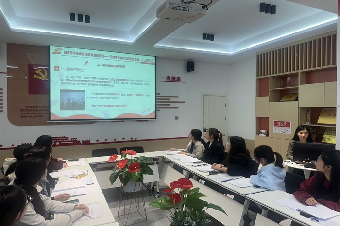 视频学习结束后,王沥滢同志紧扣党课核心主旨,围绕红色精神传承与青年奋进担当,通过PPT演示和解读红色精神,以遵义会议精神为切入点,系统梳理其核心内涵,并结合专业学习案例,分享“红色精神如何助力攻克技术难题”,立足校园实际提出“理论研学+科创实践”的传承模式,让解读更生动、路径更具针对性。