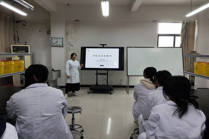 医学检验学院学业导师师献雪在学院第一实验室开展了“实验室安全教育”专题指导会。通过90分钟的现场教学,为刚接触专业课程的学生筑牢实验室安全防线。本次安全教育采用“全过程、场景化”的教学模式。师献雪导师将实验室安全要求分解为实验前、实验中、实验后三个环节,系统讲解了实验服穿戴、设备检查等准备规范,实验操作中的试剂取用和仪器使用标准以及实验结束后的清洁消毒流程。针对可能发生的安全事故,师献雪重点演示了试剂泄漏的应急处理和火灾逃生方法,通过现场模拟让学生掌握灭火器使用、紧急疏散等关键技能。在教学过程中,师献雪导师不仅讲解了标准操作流程,更通过真实案例剖析,让学生深刻理解违规操作可能带来的严重后果。这种理论与实践相结合的教学方式,有效帮助学生将安全知识转化为实际操作能力。此次安全教育让同学们对实验室规范有了更系统的认识,对培养学生规范意识和安全素养具有重要意义。