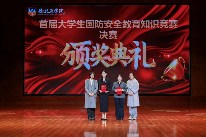 为普及国防安全知识,增强师生国防观念,11月5日,豫北医学院第一届国防安全知识竞赛总决赛在闻德礼堂隆重举行。崇德书院学子姚*怡、刘*婷、贾*雪、安*丽、郭*超组成的代表队凭借扎实的知识储备与出色的临场表现,荣获第二名。