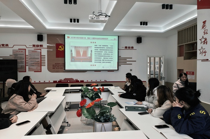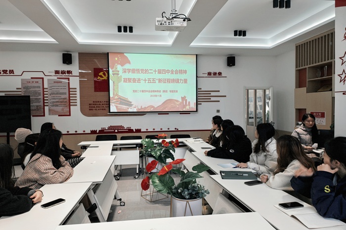 为学习贯彻党的二十届四中全会精神,推动习近平新时代中国特色社会主义思想入脑入心,崇德书院学生第三党支部于2025年11月25日19:00,在书院党建活动室开展党的二十届四中全会精神专题党课。崇德书院学生第三党支部书记王沥滢老师担任主讲人。