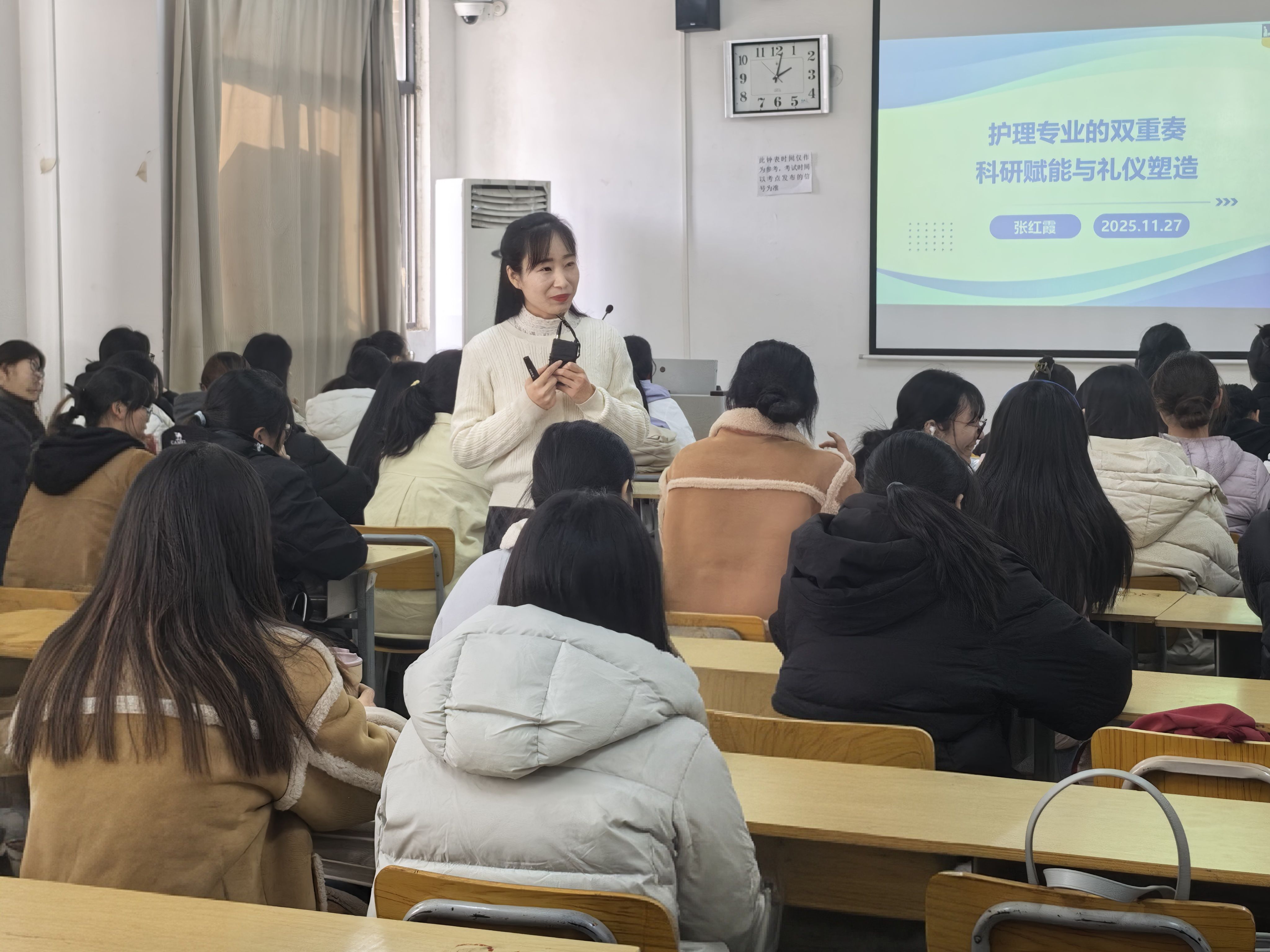 书院开展成长赋能系列讲座,覆盖职业规划、学业辅导与专业拓展三大板块,累计参与超400人次。活动特邀医学检验领域校友陈云龙、外国语学院李素芬老师、护理学院张红霞老师等,围绕行业趋势、四级备考、科研方法与职业礼仪开展专题分享。“学霸引航”系列分享会则邀请多位奖学金获得者,分享学习方法与成长经验,充分发挥朋辈引领作用。此外,“科研启航”雏鹰组队计划通过师生双选成功组建14支科研团队,在蔡一蔓、程小飞等8位院系老师的专业指导下推动学生迈出科研第一步。