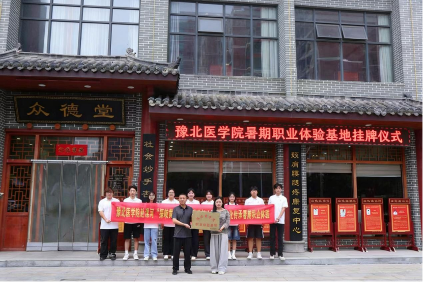 本次职业体验由豫北医学院崇德书院辅导员卓银鹏带队,崇德书院23级本科护理学9名本科学生参加。崇德书院与河南众德堂中医药科技有限公司达成共识,建立暑期职业体验基地,并举行了揭牌仪式。