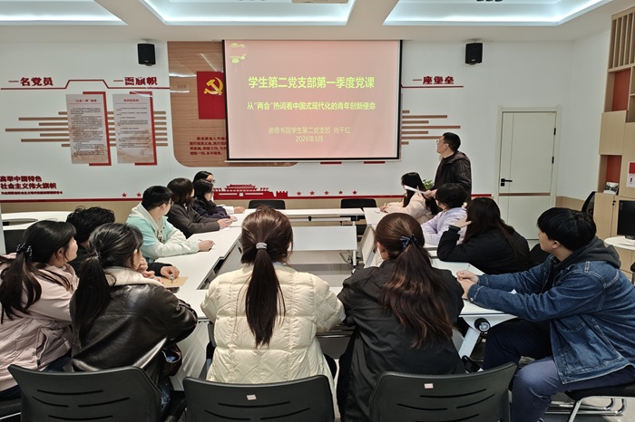3月16日,崇德书院学生第二党支部开展2026年第一季度专题党课,支部书记尚千红以《从“两会”热词看中国式现代化的青年创新使命》为题,为支部全体党员讲授专题党课,旨在深入学习贯彻2026年全国两会精神,引导青年学生党员在中国式现代化征程中找准创新坐标。