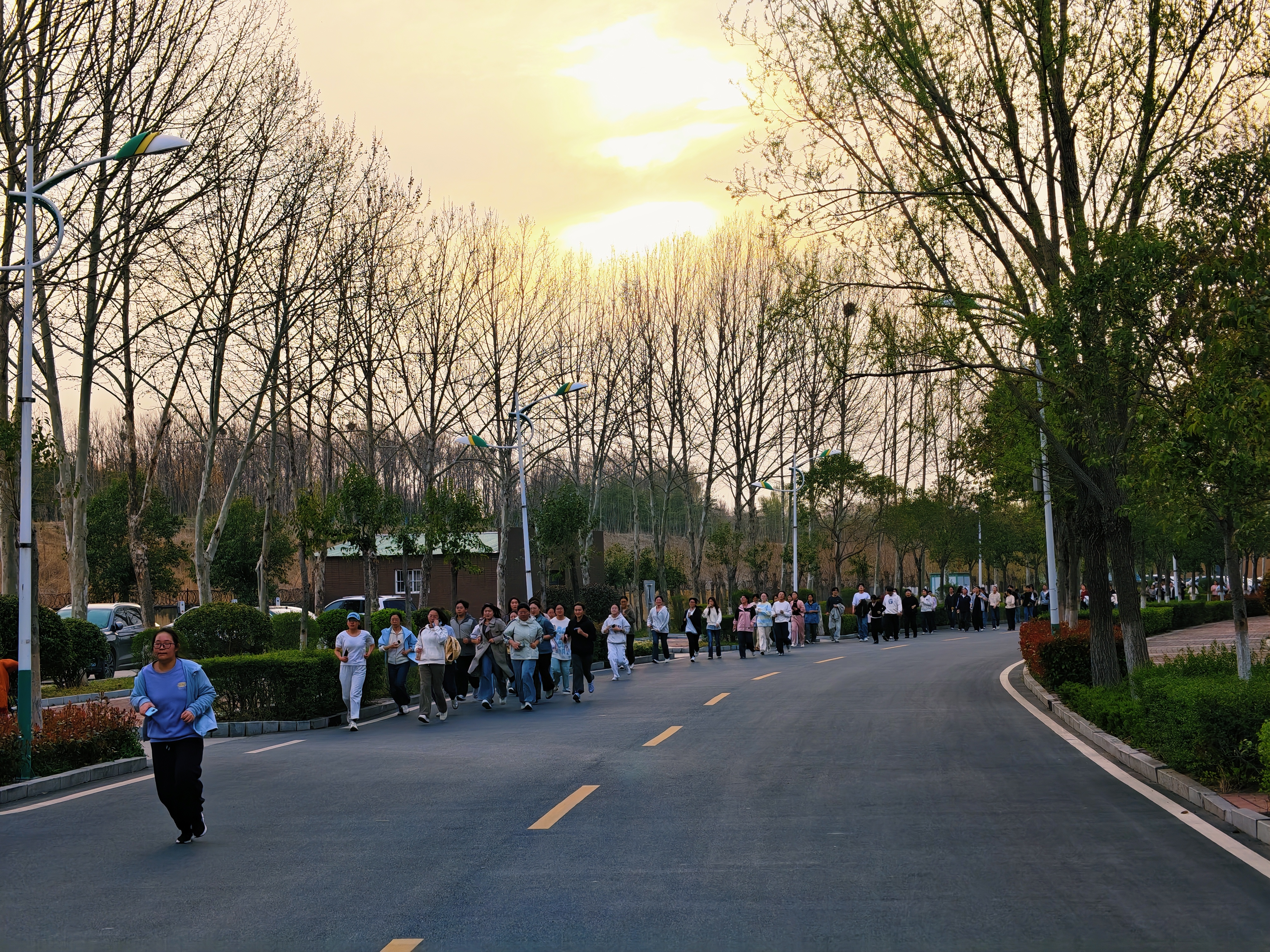 随着一声清脆的发令枪响,李琼正式宣布开跑,校领导们带头迈步,长长的奔跑队伍如同一条灵动的长龙,沿着校园道路缓缓前行。师生们步伐轻快、精神抖擞,欢声笑语伴着脚步声,成了春日校园里最动人的风景,大家用脚步丈量校园,用奔跑传递热爱。